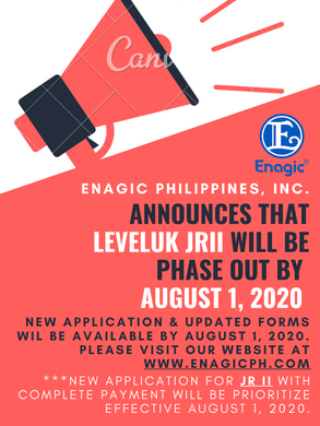 Please be advised that Leveluk JRII will be phase-out by August 1, 2020. New Application & updated forms will be available by August 1, 2020. PLEASE Visit our website at www.enagicph.com